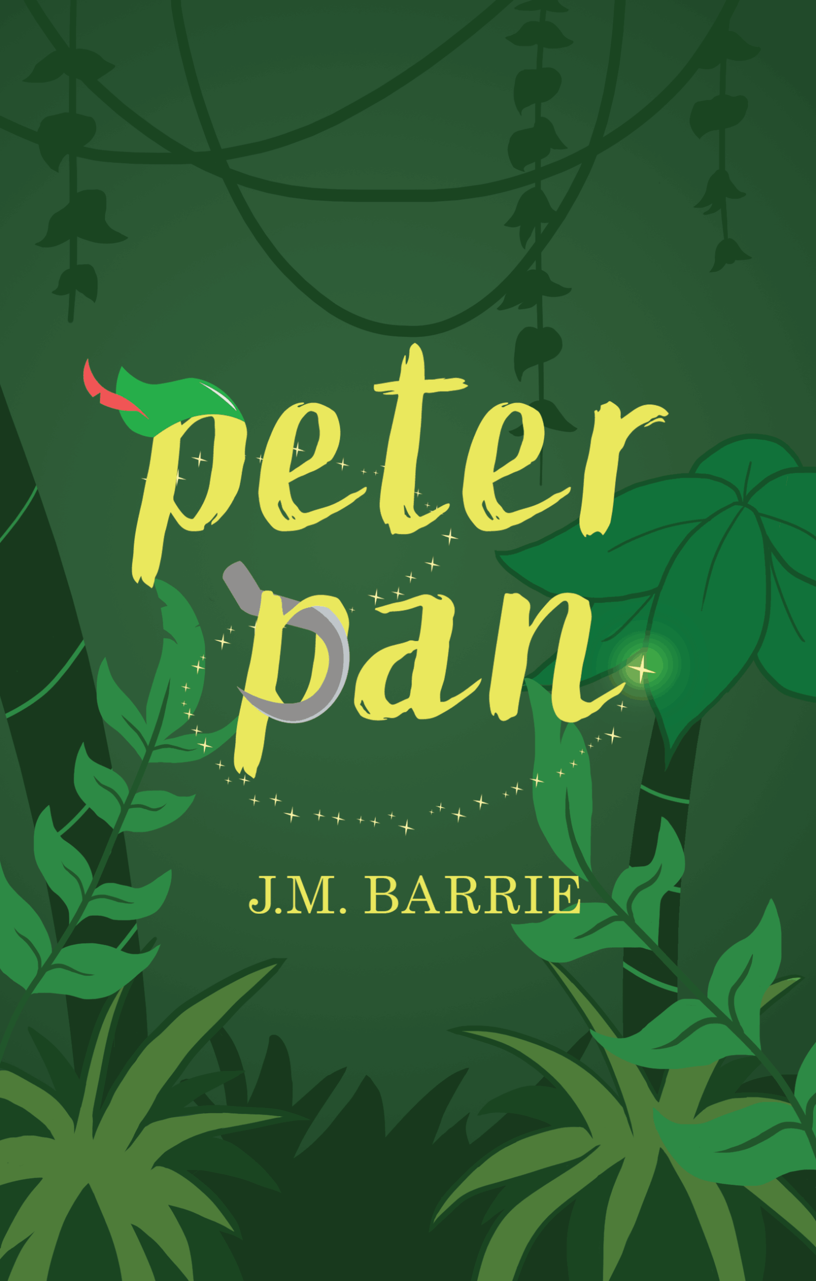 This Peter Pan cover redesign aims to use Neverland Island’s vegetation as an illustrative background so the bright title can stand out.