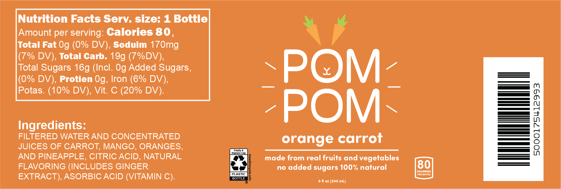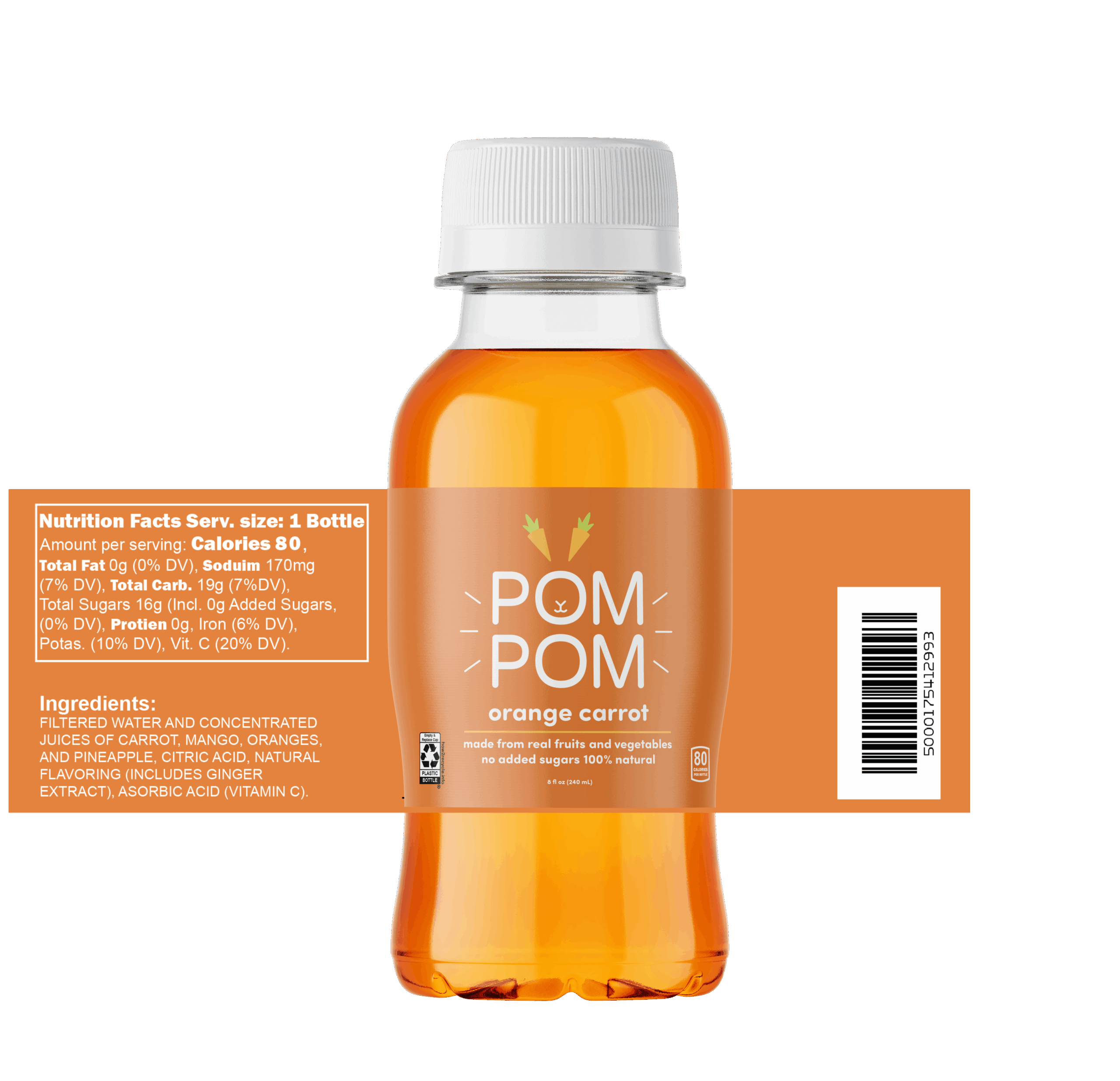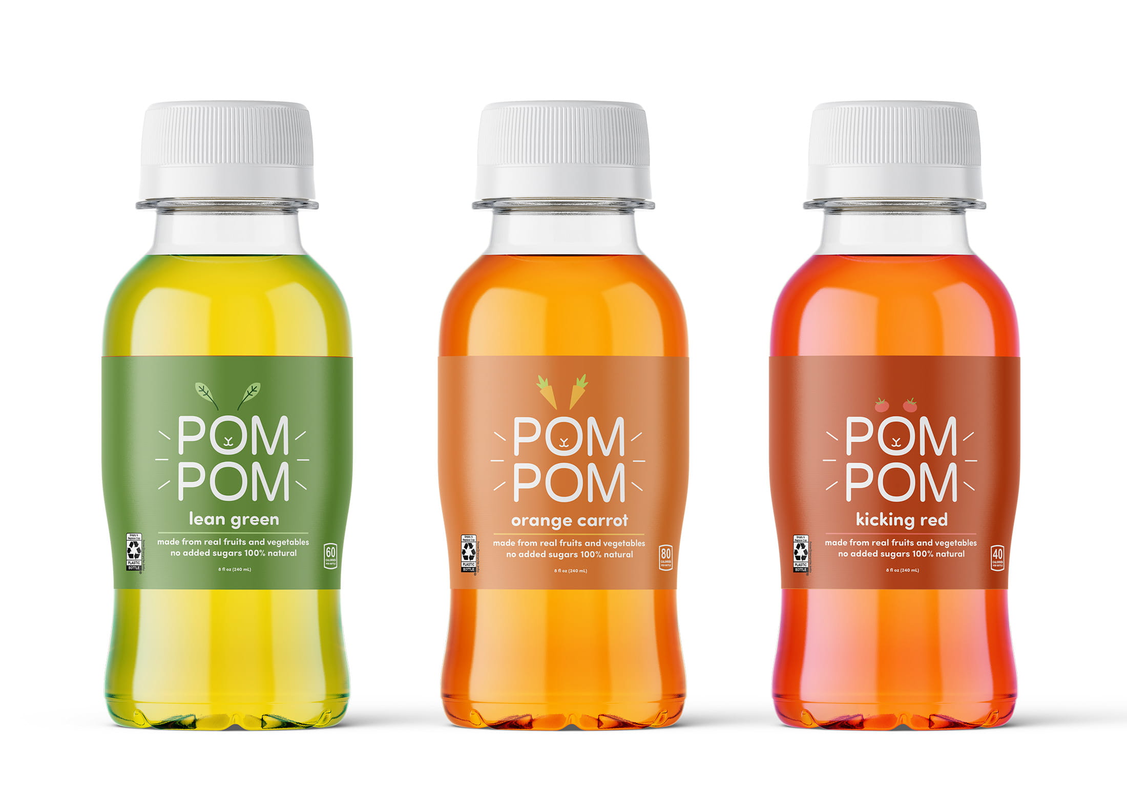 POMPOM is a beverage brand designed for children and young adolescents. Its playful tone and welcoming visual language create an approachable identity that resonates with a younger audience. By making fruits and vegetables feel fun and accessible, the brand encourages children to meet their recommended daily intake in an engaging and positive way.