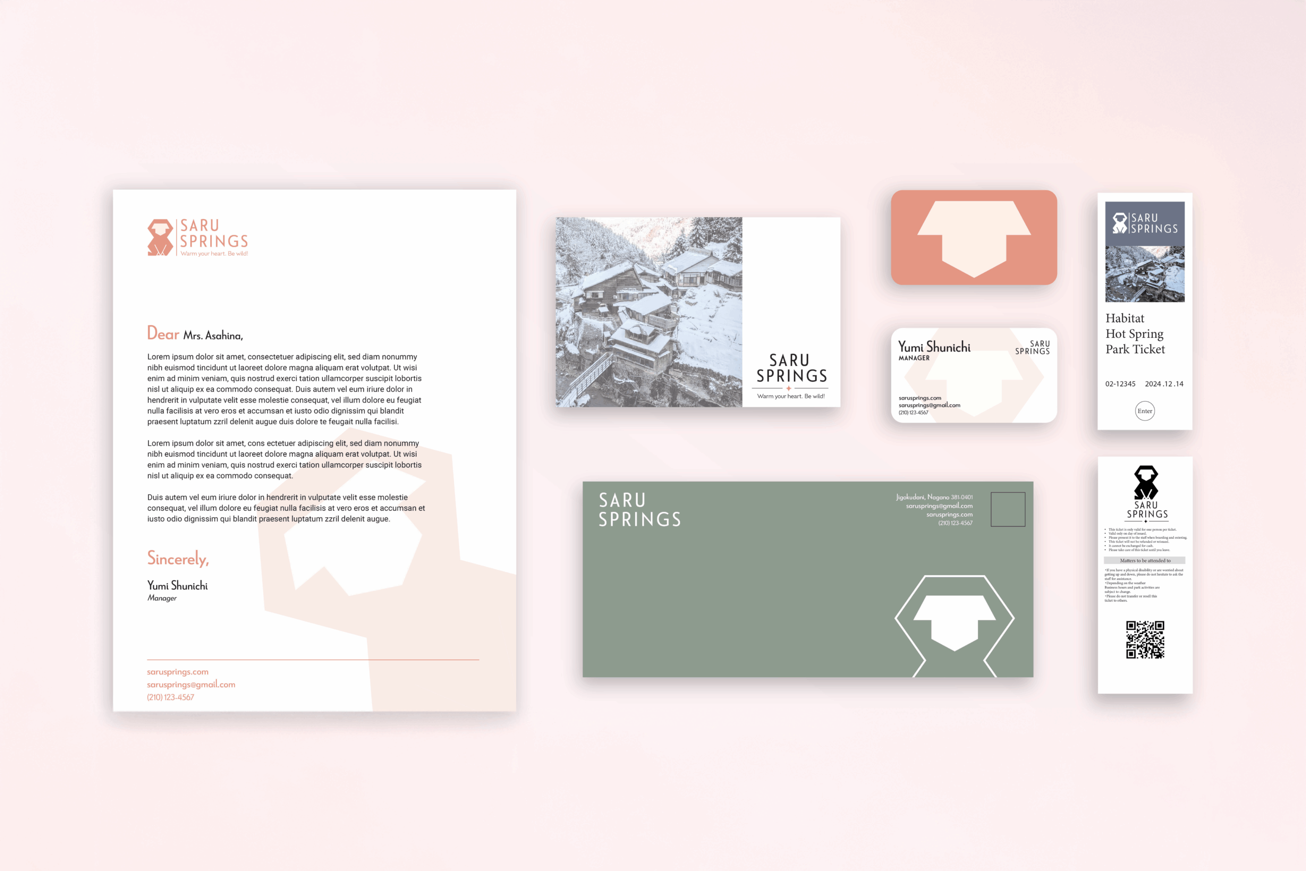 Saru Springs is a park located in Japan’s snowy Jigokudani region, where snow monkeys bathe in natural hot springs. The brand features a snow monkey logo and a soft, welcoming color palette that reflects the warmth and serenity of the environment, inviting visitors to learn about the monkeys and their habitat.